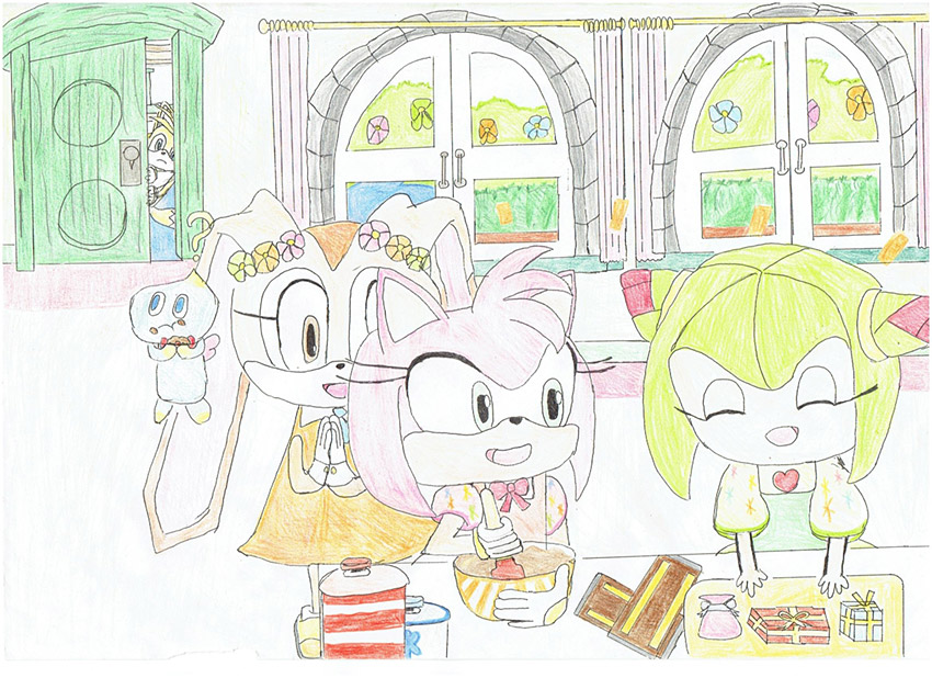 もうすぐバレンタインデーとなったこの日、エミーとコスモが恋する人にチョコレートを作っています。クリームとチーズが様子を見に来ました。クッキーをもらったチーズですが、目線の先には・・・?どこかでソニックもみんなが会話している様子を盗み聞きしてるようです。探してみてください!
