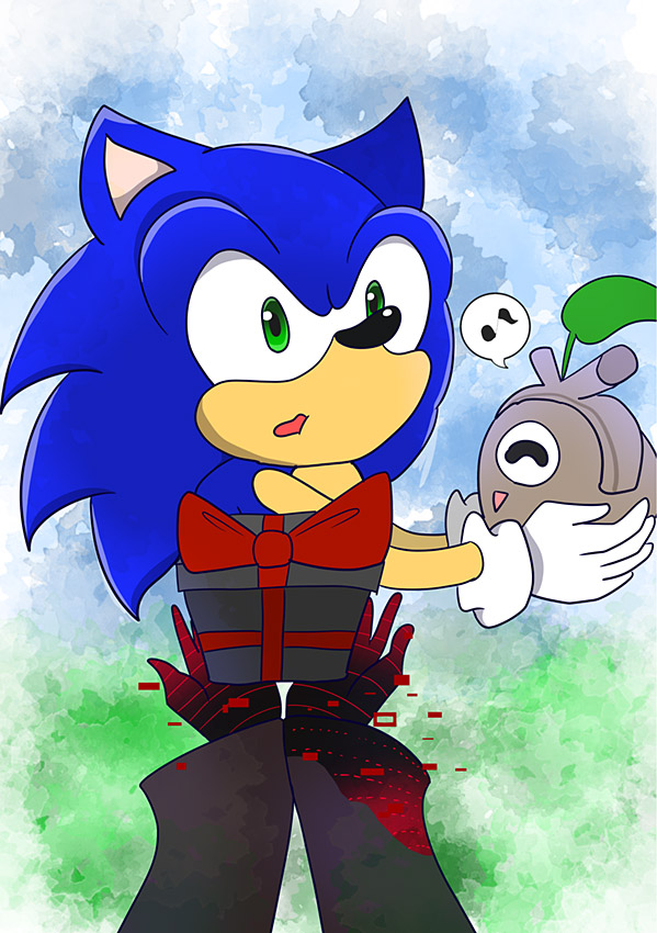 フロンティアを少し意識して初めてのプレゼントを贈る相手という目線で描いてみました。あらためて、ソニック誕生日おめでとうございます!