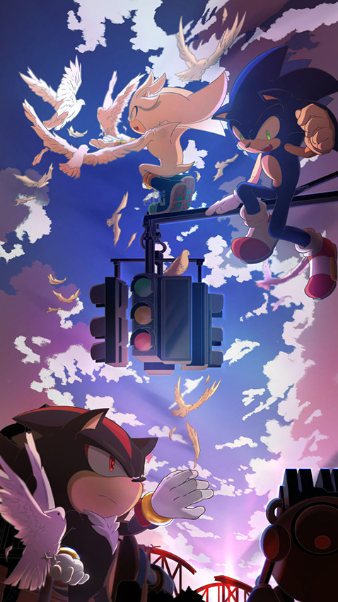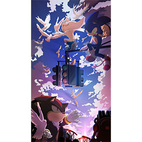 夜空の花火をバックにポーズを決めるソニックたちがカッコイイ! 新しい冒険に向かって動き出す予感を感じさせる一枚です。