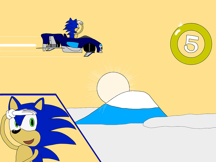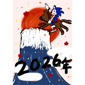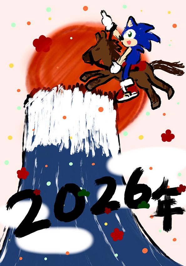 とても力強いイラストをいただきました!干支である馬に乗り天を指さし富士山を超えるというダイナミックなシーンに今年も更なるソニックの勢いを感じますね。