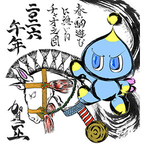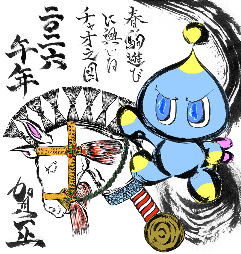 午年なのでお馬さんのオモチャを駆るチャオを描きました、あけましておめでとうございます♪