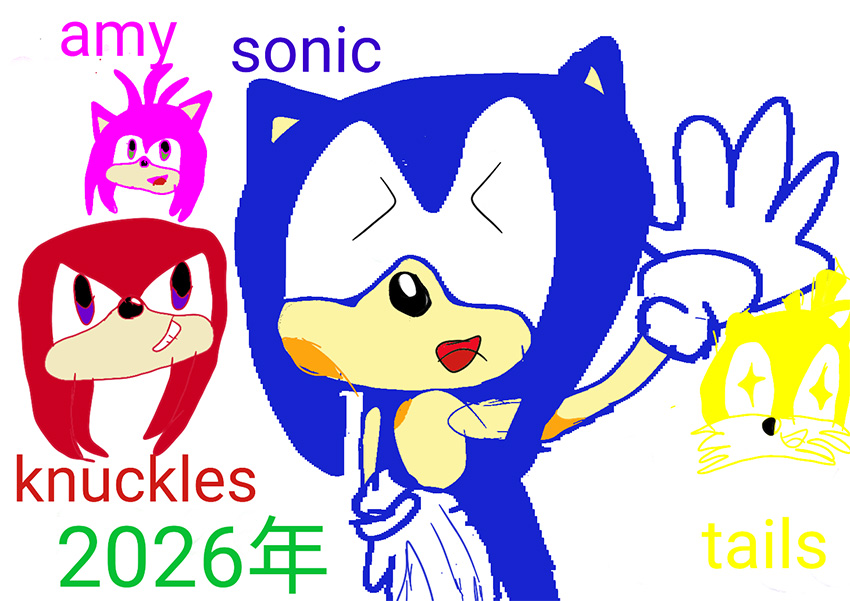 新しい年の始まりを、音速で駆け抜けるSonicを描きました。力強い筆致とスピード感のある構図で、新年の勢いと前向きな気持ちを表現しています。2026年もワクワクする一年になりますように。