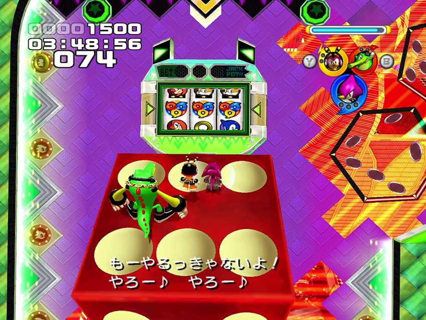 チャーミーのセリフがにぎやかさに拍車をかけるナイスショット、ありがとうございます♪カジノパークの空気にあてられて、ついに事務所の命運をスロットに託しちゃった...!?一歩前に出ているエスピオに、体を張って止めてもらうしかなさそうです。