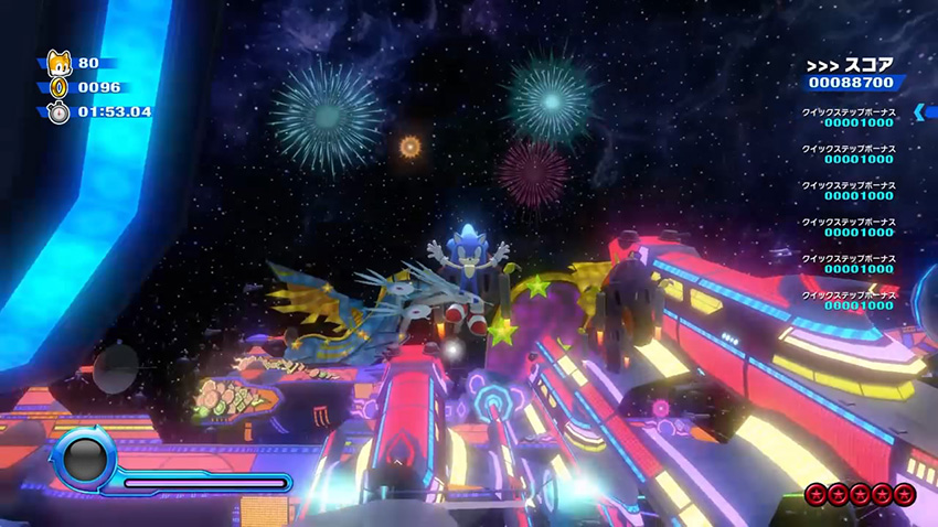 ステージの背景だけで楽しさを感じられるカラーズの中から、ソニックが走っていく道が光りながら出来ていく感じや艦隊や花火も綺麗で今回のテーマの「にぎやか」さを感じられるスターライトカーニバルを選んでみました! トランスフォームドに続いて、クロスワールドでも走れるみたいなのでそちらも楽しみです!