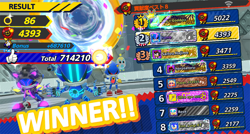トップ3がメタルソニックでしたが、スキンは全員違いまいした。同じキャラでも色々なスキンが有るのがこの作品の良い所ですね。