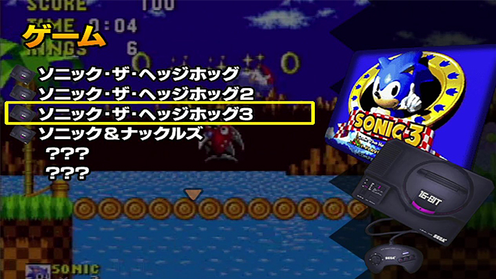 さらに、条件を満たしてソニックシリーズ以外の「隠しゲーム」を解放すると、遊べるソフトは全部で16本に!ほかにもソニックのお宝映像や絵コンテなどが楽しめる、お楽しみ要素満載のお得な一本です。