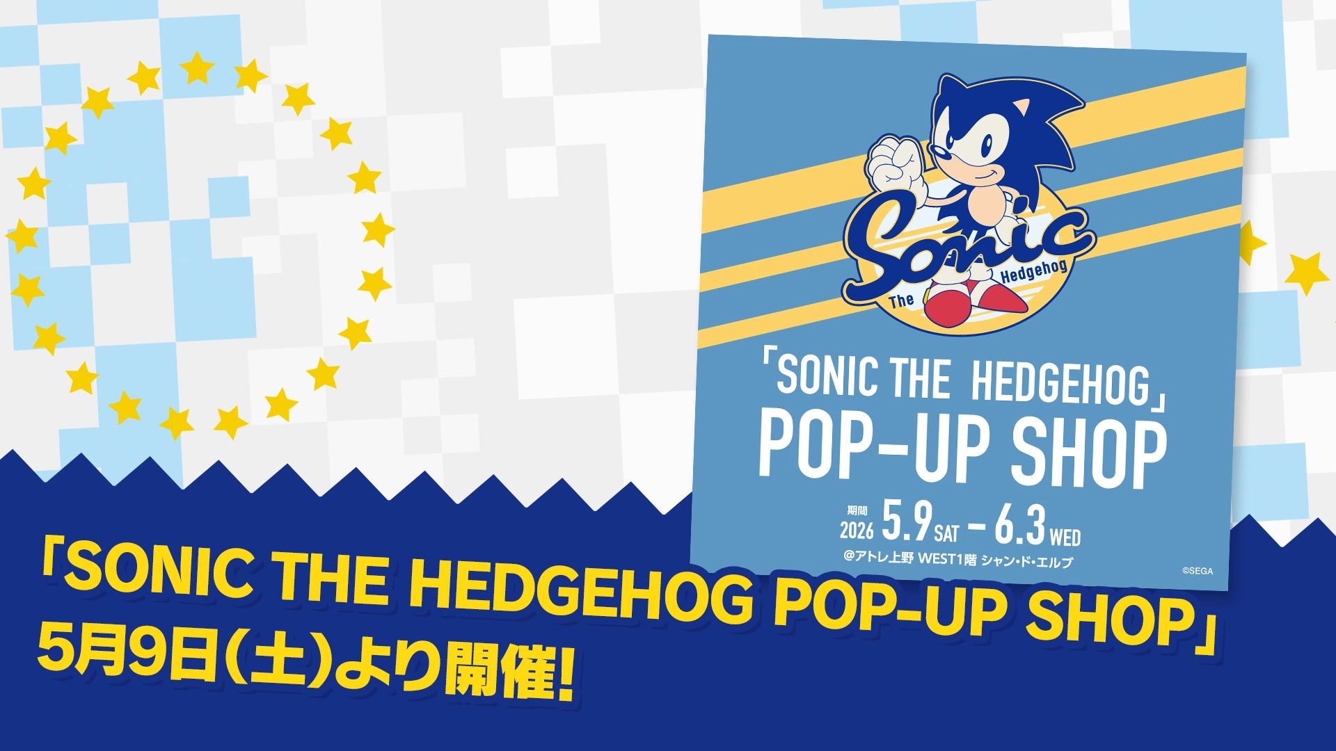 「ソニック」のPOP-UP SHOPが、「シャン・ド・エルブ アトレ上野店」にて2026年5月9日(土)から6月3日(水)まで期間限定で開催!