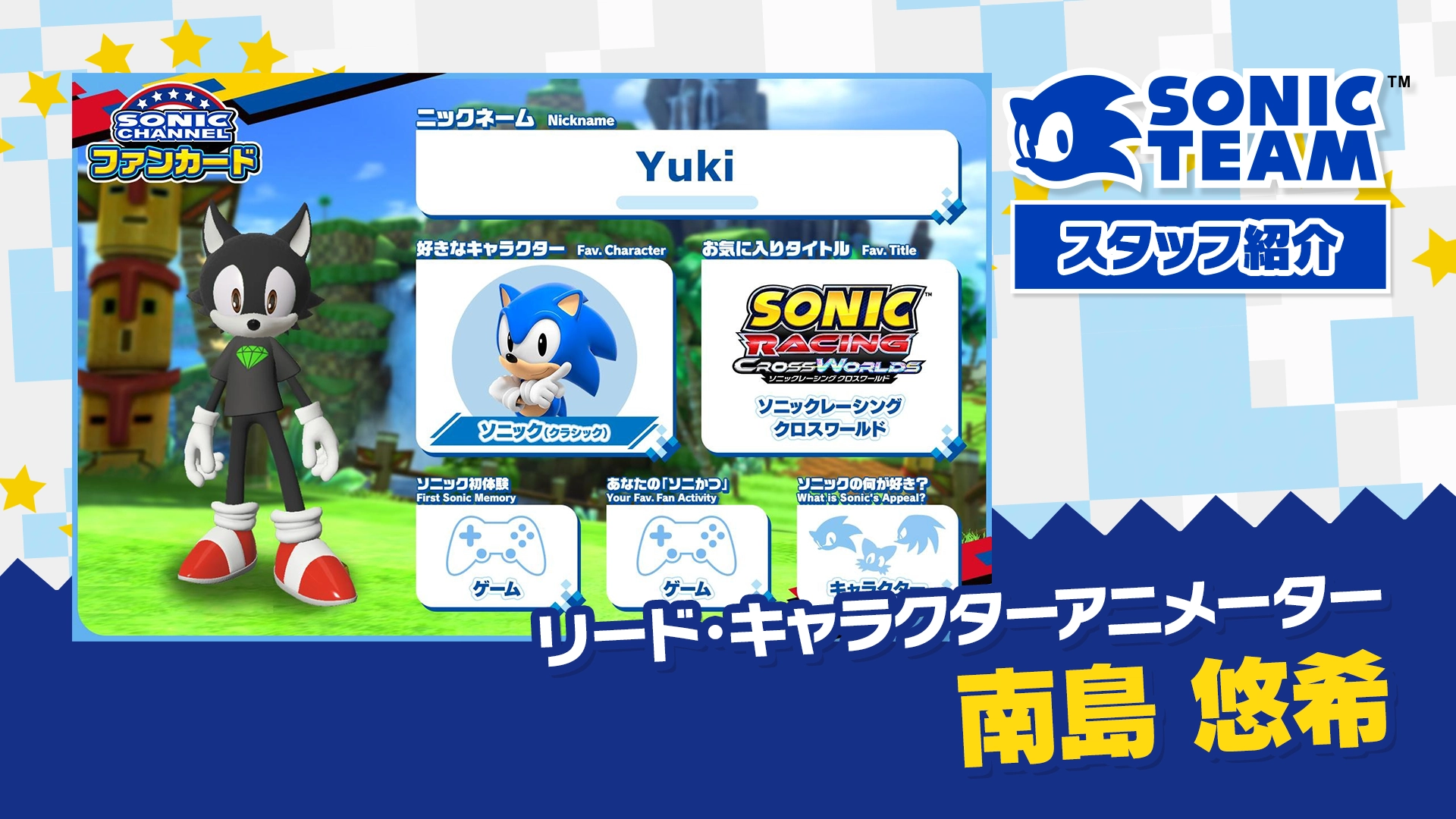 「ソニック」をつくるスタッフたちがどんな人たちなのかが、「ソニックチャンネル ファンカード」などを通じて垣間見えるメンバー紹介のコーナー!