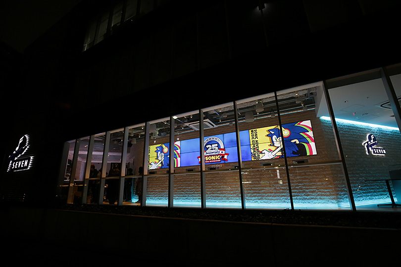 会場となった東京・南青山のFuture SEVENは、通りに面した大きなスクリーンに25周年記念ロゴとギターソニックが表示され、来場者のみならず、道行く人々やクルマからの視線を集めていました。特にライトアップされた夜は、こんな感じで目立っていましたよ!